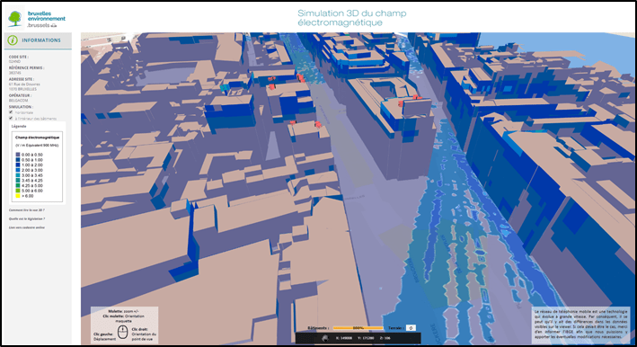 Exemple d’un portail de simulation des nuisances électromagnétiques des antennes de téléphonie accessible par les citoyens :  Antennes 3D