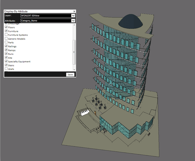• Total convergence of BIM & 3D Territories: unlimited visualization of BIM’s in an interactive 3D digital model: cross-sections, interrogation, colorization…